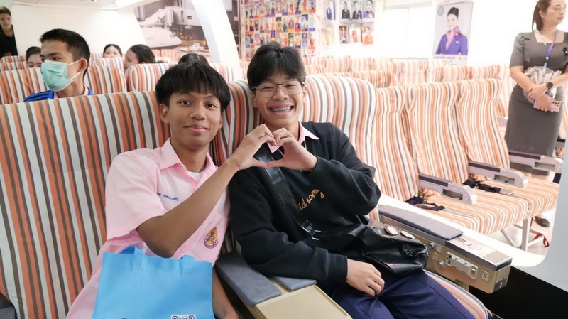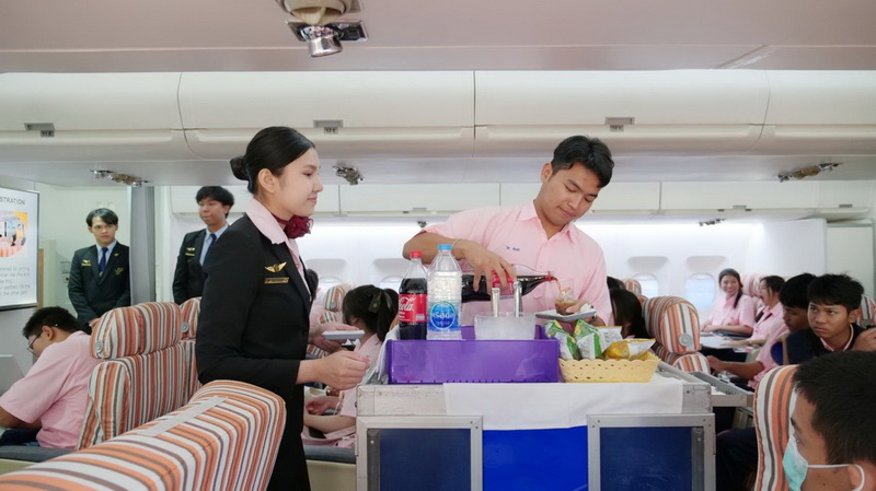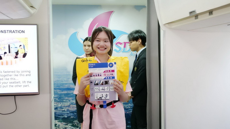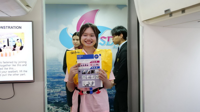 จากอาจารย์ผู้เชี่ยวชาญทำกิจกรรมฐานการเรียนรู้สุดเข้มข้น ทั้ง In-flight Service และ Safety & Emergency ณ Mock Up
